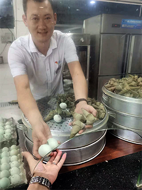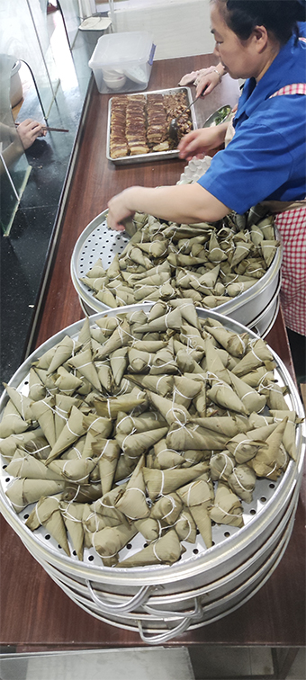 中午每位員工吃著可口的粽子、鹽蛋,